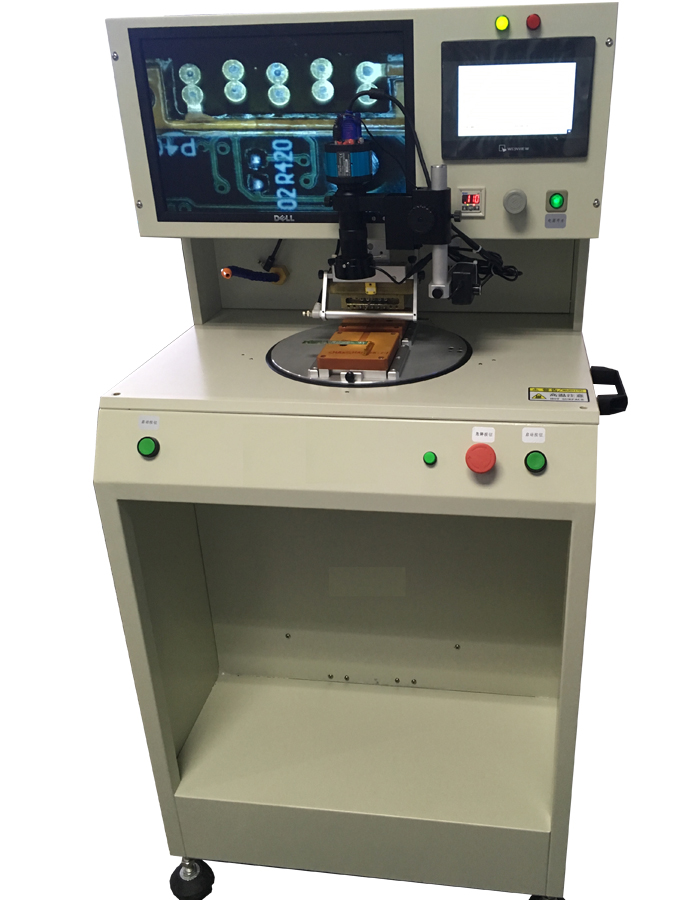 2、特种材料焊接头,确保产品受压平均,采用精密导轨气缸控制压头下压.精度更准.可焊间距0.02mm焊盘.